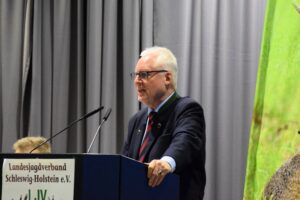 Nach den Klängen des Jagdhornbläsercorps Neumünster eröffnete Präsident Wolfgang Heins die diesjährige Tagung der Hegeringleiter. In seiner Eröffnungsrede hob er die zentrale Bedeutung des Wildtiermonitorings hervor, insbesondere durch das seit mehr als 30 Jahren bestehende Wildtier-Kataster Schleswig-Holstein (WTK), das wissenschaftlich fundierte Daten zu den Wildbeständen im Land liefert. Im ersten Fachvortrag stellte Heiko Schmüser vom WTK die vorläufigen Ergebnisse der Erfassungen des vergangenen Jahres vor. Kritisch thematisierte er dabei die teilweise geringe Beteiligung einzelner Hegeringe. Schmüser rief dazu auf, noch ausstehende Erfassungsbögen bis Ende Februar einzureichen oder online zu übermitteln. Zudem erinnerte er an die wichtige Weitergabe von Wildnachweisen an das WTK. Wie relevant das Monitoring ist, zeigte sich unter anderem am Tierfund-Kataster, das Hinweise für das Auftreten der Myxomatose beim Feldhasen in Schleswig-Holstein im letzten Jahr lieferte. Mit einem Ausblick auf das Monitoring 2026 schloss Schmüser seinen Beitrag.