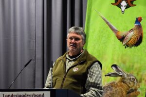 In seinen verbandspolitischen Ausführungen ging Präsident Heins auf die Neuausrichtung des Verbandes sowie auf bestehende Problematiken mit der Stiftung Naturschutz ein. Er bekräftigte die Forderung nach einem Ankaufsstopp von Flächen durch die Stiftung. Zum Thema Wolf sprach sich Heins erneut für ein aktives Wolfsmanagement aus, etwa durch Bestandsregulierung und Wolfs­ausschluss­areale. Gleichzeitig kündigte er Schulungsangebote für die Jägerschaft an, unter anderem zu den Themen Wolf und Nachtsichttechnik. Mit Blick auf anstehende Wahlen kündigte er die zeitnahe Bildung eines entsprechenden Teams an.