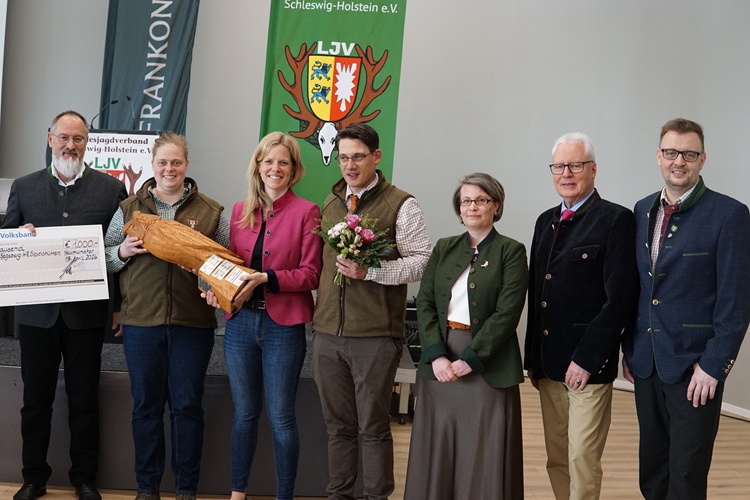 Die Schirmherrin Landwirtschaftsministerin Cornelia Schmachtenberg verlieh die Preise und dankte den engagierten Jägerinnen und Jägern für Ihren Einsatz. Gemeinsam mit LJV-Landesjugendobfrau Jenny Ehmke verlieh sie die Prämien und Blumen. Den 1. Platz erhielt der Hegering 8 Kisdorf aus der Kreisjägerschaft Segeberg für ein Gemeinschaftsprojekt mit den Hegeringen Kaltenkirchen und Hartenholm. Ausgezeichnet wurde ein seit Jahren getragenes Format, das Naturvermittlung, jagdliche Inhalte und Öffentlichkeitsarbeit verbindet. Der 2. Platz ging an den Hegering 3 der Kreisjägerschaft Pinneberg für ein Projekt mit Nistkastenkameras, das Kindern in Kita und Grundschule Einblicke in die heimische Vogelwelt ermöglicht. Den 3. Platz belegte der Hegering Garding 2 der Kreisjägerschaft Eiderstedt für seine langjährige Naturbildungsarbeit im Naturerlebnisraum Katinger Watt.