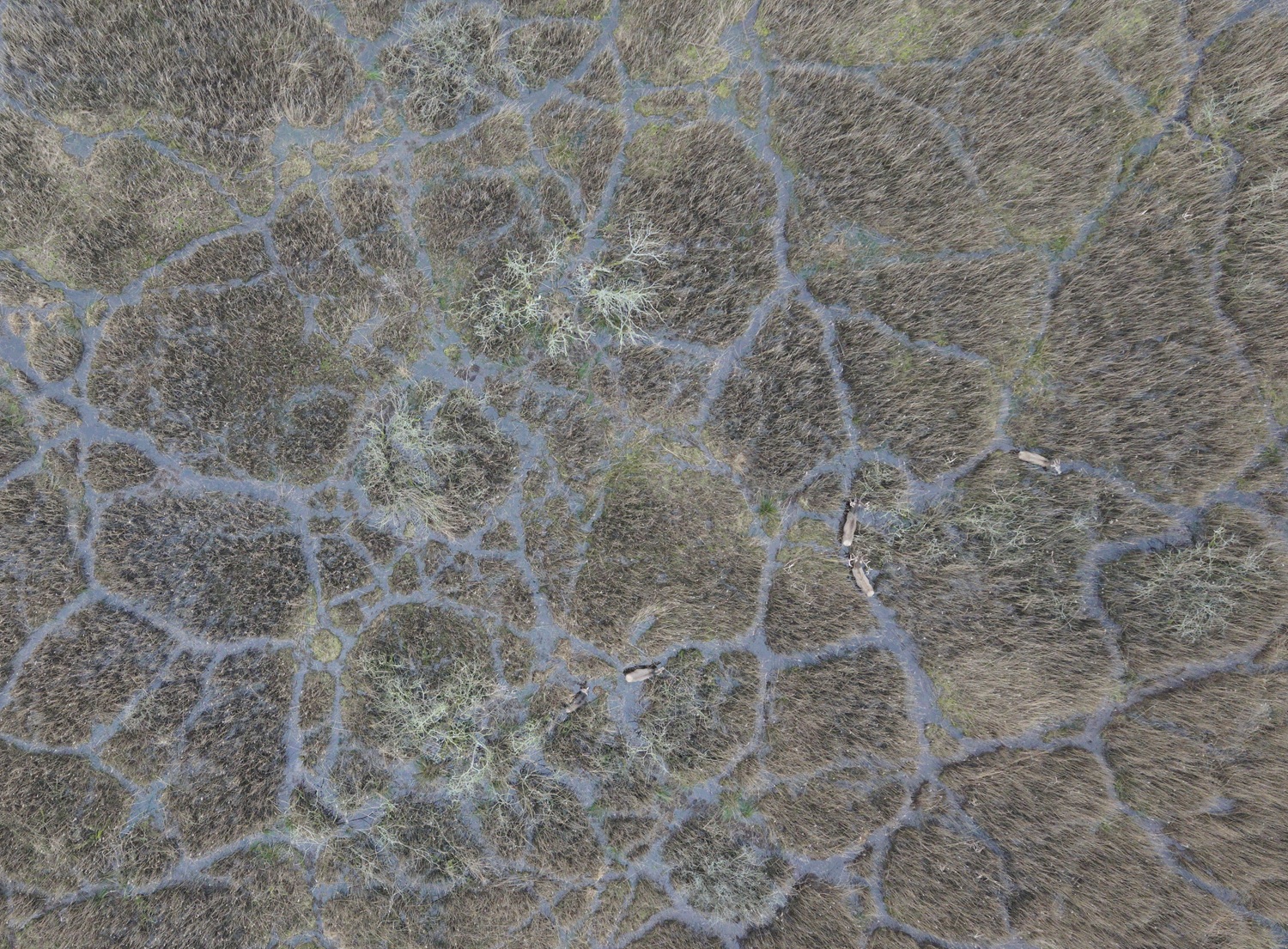 Das Luftbild zeigt: Rothirsche gestalten auf vielfältige Weise ihren Lebensraum – insbesondere durch Beweidung, Transport von Pflanzensamen und Tritt. Von dem Strukturreichtum profitieren zahlreiche Tier- und Pflanzenarten. Foto: Bioconsult